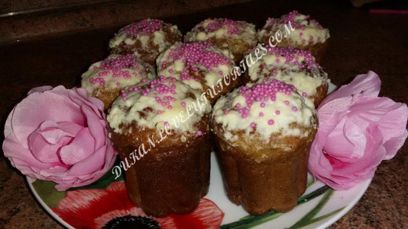 Тесто : 2 ст л овсяных отрубей, 1ст л пшеничных отрубей, 2ст л клейковины, сахзам, 1,5 ст л разрыхлителя, 1ст л сухого молока, 1ст л кукурузного крахмала, 90 гр мягкого творога,3 яйца, молоко ( вливаем и смотрим, чтобы тесто было как густая сметана ) , все перемешать и выложить тесто в формочки. Глазурь (1 ст.л.СОМ с горкой+3 ст.л. молоко)на 1 мин. в микру+аромик клубника. Кисточкой намазала на кексы. Тесто в формочки накладывала по 1,5 ст. л. - оно поднимается. Пекла минут 25. В тесто добавила аромик клубника. Рецепт Иришки Пугач Автор фото Ирина Евграфова |
