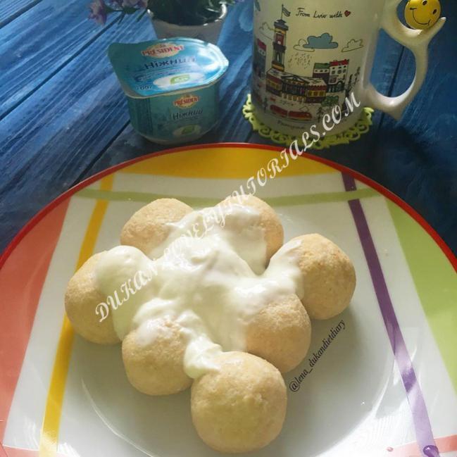 Вложение 1394 Рецепт: 200 г творога в брикете (см #lena_видытворога ) мука из овсяных отрубей или перемолотые отруби (на этапе #Атака 1,5 ст л, #Чередование 2 ст л, #Закрепление 2,5 ст л) 1 желток сахзам/подсластитель по вкусу (брала 4 г фитпарада) Все ингредиенты тщательно вымешать до однородности, постараться размазать желток по всей массе. Сформировать шарики и забросить в кипящую воду. Варить 5-6 минут на минимальном огне. Сверху полила творожком, на #пп можно взять нежирную сметану. Также на #пп или на этапе #Закрепление внутрь можно вложить вишню, клубнику или другие ягоды🍒🍇🍓На диете Дюкана разрешены с этапа #Атака с соответствующим количеством отрубей. Рекомендации: 📍выбирайте максимально сухой творог 📍не берите целое, даже маленькое, яйцо. Только желток 📍вода, в которую опускаются вареники, не должна бурлить, поэтому сразу уменьшайте огонь до минимума Приятного аппетита |