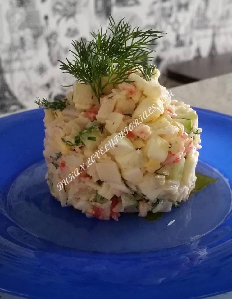 ✔1 яйцо ✔ 4 краб.палочки ✔1/2 небольшого огурчика ✔Зелень ✔соль ✔ обезжиренный творожок или йогурт 2 ч.л. Отвариваем яйцо. Краб.палочки, огурец и яйцо крошем кубиками. Заправляем обезжиренным йогуртом или мягким творожок. Добавляем по вкусу соль и зелень.(вместо огурца еще можно положить помидорку) Автор-dd_xydeu |