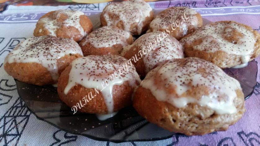 5 ст.л сухого молока 1,5% 2 ст.л овсяных отрубей 1 ст.л обезжиренного мягкого творога 0% 2 яйца 1/2 ч.л разрыхлителя 6 таблеток сахзама 1 ч.л. молотой корицы Разогреть духовку до 180 градусов. Взбить миксером 2 яйца в глубокой чашке в течение 1-2 минут, до образования пузыриков. Добавить в яичную смесь творог и взбить еще 1/2 минуты. Растереть сахзам в столовой ложке, добавить в ложку теплую воду, подождать, пока не растворится. Вылить содержимое ложки в яичную смесь. Высыпать в смесь овсяные отруби, сухое молоко, разрыхлитель и корицу. Тщательно перемешать до однородной массы. Выложить в силиконовые формы на 3/4 объема. Выпекать 20 минут в духовке. Автор-Любовь Керякова |