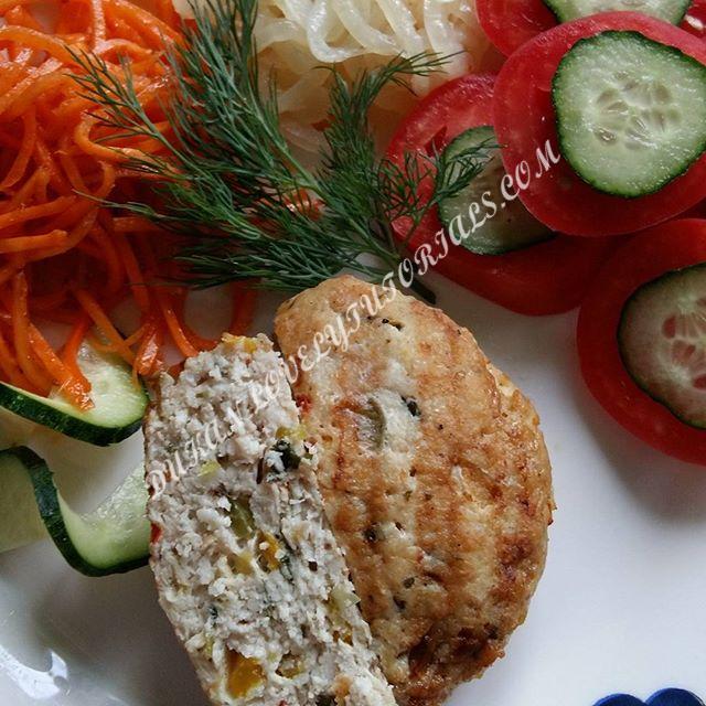 Вложение 1730 Рекомендую приготовить✌ Куринная грудка+куриное мясо перекрутить + мелко кубиками порезать болгарский перец красный и жёлтый + мелко порезать 1 помидор (много не нужно ) +перекрутить 1 луковицу (помельче )+порезать мельком кинзу придаёт очень пикантный вкус 👍 (кто не любит даже незнаю чем можно заменить 😦) посолить ,поперчить по вкусу Жарить на сковороде гриль (если нет то на обычной под крышкой ) немного смазать маслом Немного поджарить ,затем на тарелку и накрыть тарелку целлофановым пакетом (я ставлю тарелку в пакет а края прижимая дном тарелки ) и на 4 минуты в микру .Получаются сочными и вкусными . Рекомендую Если фарш получится жидким (много лука и помидор ) обваливайте в кк и на сковороду ! Источник:tatiana.pleskacheva |