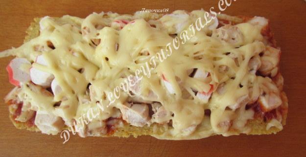 Вложение 397 Продукты: для коржа: овсяные отруби 2 ст.л. (на атаке 1,5) пшеничные отруби- 1 ст.л.(можно и без них) кефир- 3 ст.л. 1 яйцо-я взяла 2 белка разрыхлитель-1 ч.л начинка: по вкусу у меня была запеченная в духовке куриная грудка, 2 крабовые палочки, кусочек нежирного сыра,томатная паста Приготовление: все ингридиенты для коржа смешиваем,выкладываем в форму подходящую для микровоновки у меня есть форма силиконовая в виде прямоугольника-из нее вот такой кексик выходит Вложение 398 Ставим в микроволновку на 1 минуту- смотрите- нужно чтоб тесто схватилось (может понадобиться еще секунд 30 добавить), потом вытаскиваем форму, на корж размазываем томат пасту разведенную с водичкой и солью (типа кетчуп http://ifs.cook-time.com/smiles/aiwan/std/wink.gif ), выкладываем начинку- я порезала кубиками крабовые палочки и грудинку, сверху укладываем тертый сыр и ставим в микроволновку еще на 1,5-2 мин... Все. Пицца готова! http://ifs.cook-time.com/smiles/aiwan/std/yahoo.gif http://ifs.cook-time.com/smiles/aiwan/std/yahoo.gif http://ifs.cook-time.com/smiles/aiwan/std/yahoo.gif http://ifs.cook-time.com/smiles/aiwan/std/yahoo.gif Получился вот такая пицца Вложение 399 и кусочек Вложение 400Вложение 401 |