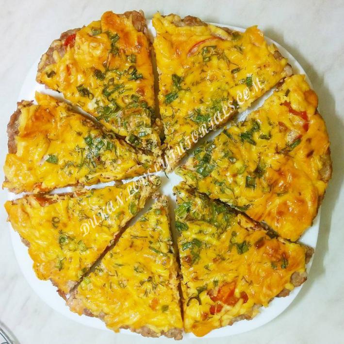 Пицца на мясной основе,вкуснятина! Ингредиенты: Куриное филе либо телятина - 500 г Яйцо - 1 шт Соль, перец - по вкусу Сухая (или свежая) зелень (у нас укроп) Для начинки: Болгарский перец - 2 шт Помидор - 1/2 шт Сыр - 60 г (маложирный) Зеленый лук - 10 г Для соуса: Томатная паста - 200 г Чеснок - 7 г Натуральный йогурт - 2 ст. л Горчица - по вкусу Соль - 1/2 ч. л (все ингредиенты соединяем) Приготовление: Для «теста»: куриную грудку с яйцом размолоть в блендере, добавить специи, перемешать. Ровным слоем распределить куриную (телячью)массу на бумаге или силиконовом коврике для выпекания, предварительно смочив руки в холодной воде. Нарезать начинку, выложить на мясную основу предварительно смазать соусом. Сверху посыпать сыром . Разогреть духовку до 180С и отправить туда «тесто» на 18–20 минут. Приятного аппетита! источник: svetik_dd_pp |
