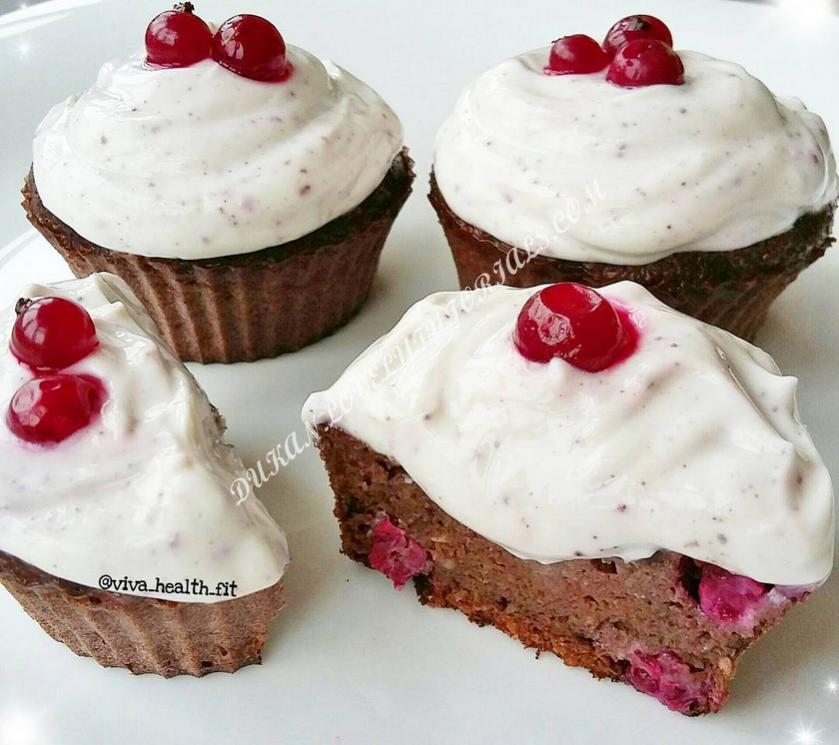 На 5 кексиков ▪2яйца ▪90 мл.молока 0,5% ▪стевия/сахзам (по вкусу),ванилин ▪~1-2ст.л.какао(по вкусу) ▪100г.отрубей(50овсяных/50пшеничных),либо 1 вида.(я их перемолола,но можно и не делать этого)) ▪ чуть разрыхлителя ▪смородина(любые ягоды) Смешать все ингредиенты.Выливаем в формочки и выпекаем при 180 ° ~ 30мин(в зависимости от духовки)👌😋 ¤Крем: ▪мягкий творог + стевия/сахзам источник: viva_health_fit |