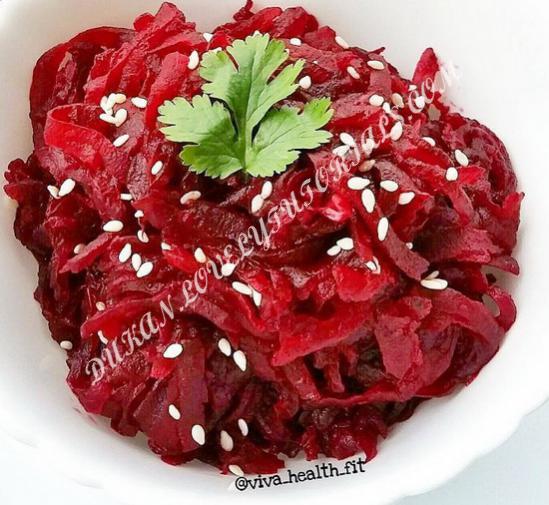 Свекольный салат с кунжутом,чесночком и оливковым маслом😋😋😋 ¤Свеклу обычно запекаю в фольге. ¤Заправляю оливковым маслом или домашним йогуртовым соусом источник: viva_health_fit |