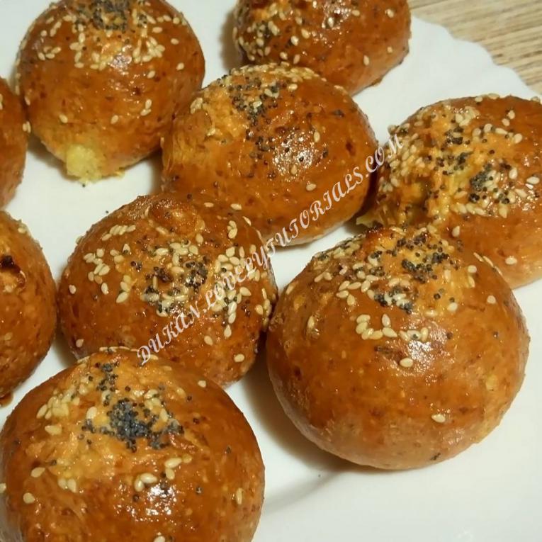 Вложение 1884 Рецепт : 2 ст.л муки ОО 2 ст.л клейковины 2 ст.л изолята 200 гр творога (мягкого, пастообразного в пачке как масло сливочное) 2 желтка 1 ч.л разрыхлителя Соль 1 ч.л масла подсолнечного Сыр(хоть дэдэшный, хоть доповый покупной), натереть на терке. Замесить тесто и оставить минут на 15. Затем делим тесто(у меня 9 кусочков). Если липнет к рукам, подсыпать изолят и смазать руки маслом. Берем кусочек теста, делаем в руках лепешечку, в середину кладем тертый сыр, примерно чайную ложку (можно в сыр добавить немного творожка и скатать шарики, чтобы удобнее класть на лепешечку), я подсыпала немного сушеного укропчика к сыру. Затем защипываем лепешечку и формируем булочки. Выкладываем на силиконовый коврик. Берем желток, добавляем немного водички, выдавливаем зубчик чеснока и этой смесью хорошо смазать булочки. Отправляем в предворительно разогретую до 190 гр духовку на 40 минут. Все источник: tusya_666 |