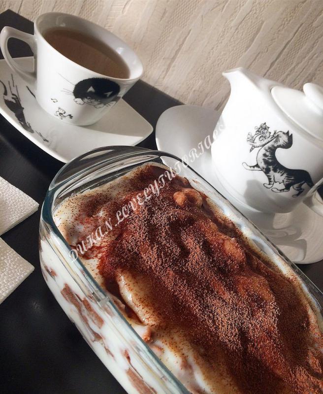 Бисквит🎂 🍰2 яйца 🍰2 ст.л. изолята 🍰2 ст.л. клейковины 🍰2 ст.л. сух. обез. молока 🍰 1 ст.л. какао 🍰150 мл молока до 1,5% 🍰10 гр. разрыхлителя 🍰сахзам по вкусу (у меня фитпарад №10, 2 мерные ложечки, но я не люблю очень сладко) 🎂Все смешать блендером или вручную, дать постоять 5 минут и в микроволновку на 6-8 минут(смотрите по мощности своей), остудить, порезать кубиками 🎂Крем🎂 🍰2 ст.л. сух. обез. молока 🍰1 ст.л. с верхом кукурузного крахмала 🍰400-450 мл молока до 1,5% 🎂Все смешать и в микроволновку на 5 минут, вынимая и помешивая каждую минуту, не делайте крем густым, для пропитки он нужен жидковатый 🎂Кубики бисквита выложить в форму слоями, промазывая кремом, сверху посыпать какао. Я в середину добавила банан🍌(дюкановцам на чередовании нельзя ☝️). Отправить в холодильник для пропитки источник :sksvetlayaya |