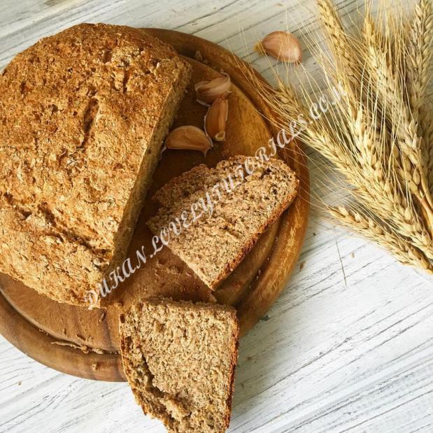 🍞450 г цельнозерновой муки 🍞1 ч л соли 🍞1/2 ч л соды 🍞3 зубчика чеснока 🍞350 мл кефира (до 1%) 🍞прованские травы (можно побольше) 🍞40 г твердого сыра (брала маложирный покупной) Смешиваем все ингредиенты, сыр и чеснок натираем на мелкой терке, заливаем все кефиром и вымешиваем. Тесто слегка липнет к рукам, но вымешивается хорошо. Формируем хлебушек и выпекаем 30-35 минут при 200 градусах. На 15-й минуте хлеб издает такой аромат, что еще в подъезде было слышно что я готовлю источник: lena_dukandietdiary |
