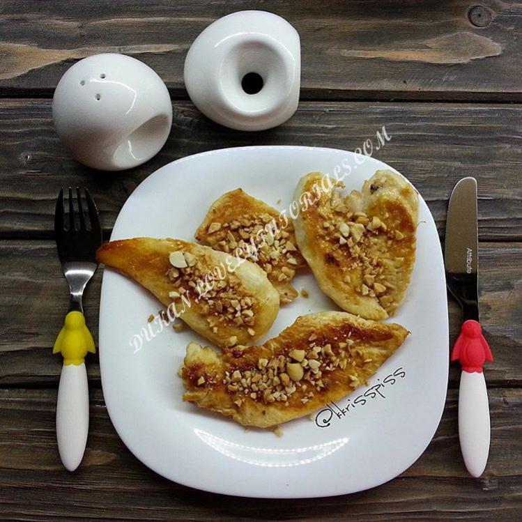 Я не реально подсела на сисикуры, приготовленые на пергаменте🙆 Я прям задыхаюсь от их нежности😂 сочности, так бы ела и ела, ела и ела😋😋 Расскажу как делаю. В свое время мне очень понравились листы от Магги для сочного филе, так вот, я решила поэкспериментировать и сделать их аналог! Купила обычный пергамент в рулоне. Отрываю нужную длину и стелю на сухую сковороду, включаю огонь на максимум и тем временем занимаюсь грудью😉 Режу её кусочками, либо как на фото, либо еще мельче,(прям поперек можно примерно 1см толщиной) соль, любимые специи только улучшат вкус, поэтому идут в ход, и ,так же, лью примерно 0.5ч.л.☝оливкового масла (примерно 2-3грамма) все куски как следует перетираю между собой и выкладываю на раскалёную сковороду! Закрываю крышкой и даю поджариться с одной стороны, тут же переварачиваю на другую (примерно по 2 минуты на каждую сторону, на быстром/максимальном огне☝☝☝☝☝) Получается волшебно сочная! Отличный ужин, такую куру можно есть постоянно! p.s.орехи можно только на ПП источник:kkrisspiss |