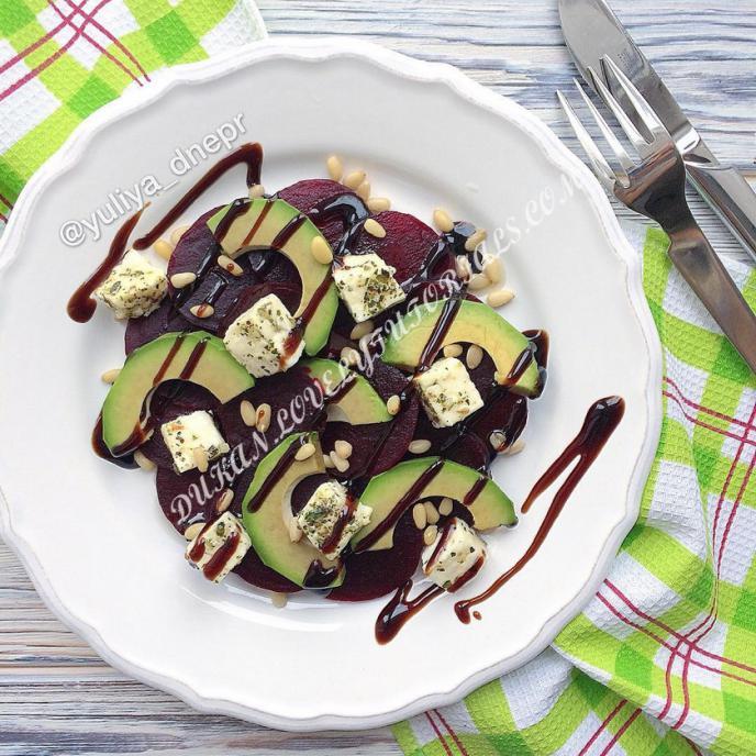 Салат со свеклой, авокадо, фетой и кедровыми орехами