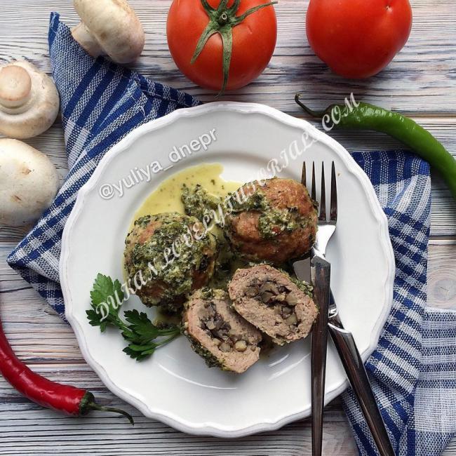 🔹Тефтели из индейки, фаршированные грибами в сливочно-шпинатном соусе🔹 •КБЖУ на 100 гр. 120.6/11.1/7.3/2.07• 🔸Ингредиенты: -фарш из бедра индейки, 600 гр -1 яйцо -1 луковица -1 ч.ложка горчицы -соль/перец по вкусу -шампиньоны, 300 гр -сливки 20%, 200 мл -замороженный измельчённый шпинат, 4 шайбочки 🔸Приготовление: -перемалываем мясо на фарш вместе с луковицей. Я использую бедро индейки, так фарш получается более мягкий и сочный -добавляем яйцо, горчицу, соль, перец. Фарш готов. -шампиньоны режим кубиками, тушим на воде (можно на масле, но тогда калорийность будет выше) -формируем тефтели: делаем лепёшку, выкладываем внутрь тушеные шампиньоны, сверху накрываем фаршем. Влажными руками их очень легко сформировать 👌🏻 -выкладываем тефтели в огнеупорную форму -сливки смешиваем с размороженным шпинатом, заливаем тефтели -ставим в духовку при 180 гр на 40-50 минут (+/- смотрите по своей духовке и в зависимости от размера тефтелей) Вкусно! источник: yuliya_dnepr |