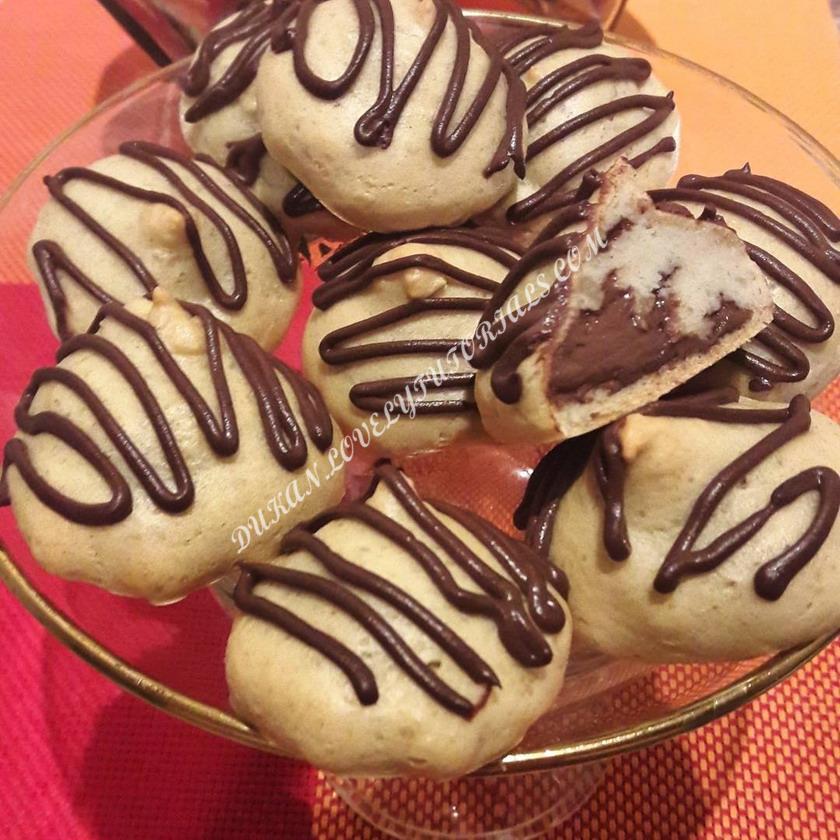 Вложение 2185 🔸️Рецепт: ✅130 мл воды; ✅30 гр клейковины (вышло 2 ст.л.) ✅40 гр кукурузного крахмала (я взяла 3 ст.л.) ✅1/2 ч.л. разрыхлителя ✅2 яйца ✅Щепотка соли Смешиваем все сыпучие ингридиенты и высыпаем в кипящую воду. Замешиваем тесто. Перекладываем массу в блендер, добавляем 1 яйцо - взбиваем. Добавляем второе, взбиваем до однородной массы (минут 5-7) Выкладываем на застеленный пергаментом противень чайной ложкой или с помощью кондитерского мешка. В духовку 180° на 30-40 мин. 🔸️Дютелла: ✅Творожок мягкий - 125 гр ; ✅СОМ - 2 ст.л. ✅Какао обезж- 2 ст.л ✅Кокосовое масло - 1 ч.л. (можно растительное) ✅Сахзам Все смешиваем. До нужной консистенции добавляла молоко (чуть-чуть). |