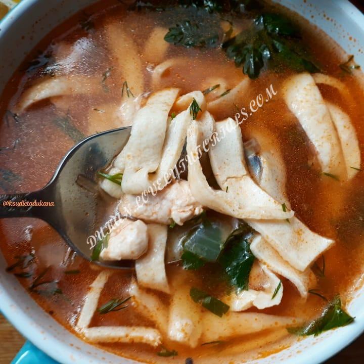 Вложение 2251 Лапшу можно использовать и просто в качестве гарнира,очень вкусно и никаких отрубей и ДОПов. Изначально готовим лапшу: 🔹️150 г рассыпчатого творога 0,5% 🔹️1 яйцо 🔹️15 г клейковины 🔹️щепотка соли Всё пробить блендером в однородную массу,масса должна быть как густая сметана.Если нет - добавить молока. Намазать массу тонким слоем на стеклянный круг в микроволновке,и поставить на максимальную мощность примерно на 8 минут(смотрите по своей СВЧ).У меня диаметр круга 36 см,я сразу всю массу намазала.Снять с круга,нарезать как вам нравится.Можно подсушить на воздухе и хранить в сухом месте.Я приготовила суп:поджарила кусочки курицы (200 г)с луком и томатной пастой(1 ст.л);1 литр воды закипятила,добавила поджарку и лапшу,проварила 4 минуты;добавила зелень,специи и соль. В БО дни можно добавить овощи(морковь,перец болгарский).Все готово.Можно с этапа Атака. рецепт:ksudietadukana |