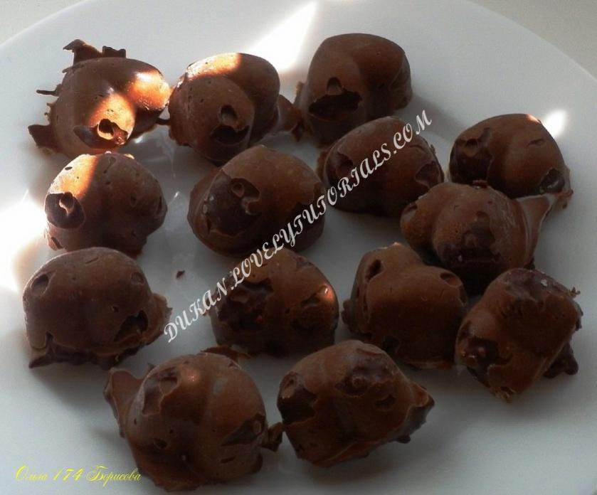Вложение 485 3 ст. л. какао,3 ст. л. сахзама (или по вкусу), 1 ст. л. кофе растворимого (у меня Нескафе), 1 и 1/2 стакана СОМ, 1/4 стакана молока, желатин 10 г, 3-4 ст. л. холодного молока дополнительно.1. Приготовьте силиконовую формочку. Если такой нет, можете взять обычный контейнер покрыв пергаментом. 2. Разогрейте молоко в небольшой турке. Растворите желатин, хорошо перемешав. Перемешайте сухие ингредиенты в чашке за исключением СОМа (сухого молока). Влить потихоньку молоко с желатином, хорошо мешая до пасты. 3. Добавьте СОМ и 3-4 ст. л. молока (дополнительного). Перемешайте. Не пугайтесь, что СОМ полностью не растворяется, это даст трюфелем текстуру нуги. 4. Ложкой аккуратно заполните формочку. 5. Теперь самый тяжелый пункт: подождать когда трюфели застынут, около 3х-4х часов поэтому будьте терпеливы поверьте это того стоит. Если вы использовали контейнер, то вам нужно время от времени проверять массу и не дать ей полностью застыть. Когда масса будет выглядеть слегка застывшей, порежьте на кубики. И еще охладите. так формочек у меня нет,делала в контейнере.по этому на вид не очень,но вкусные.только на мой вкус кофе нужно поменьше. |