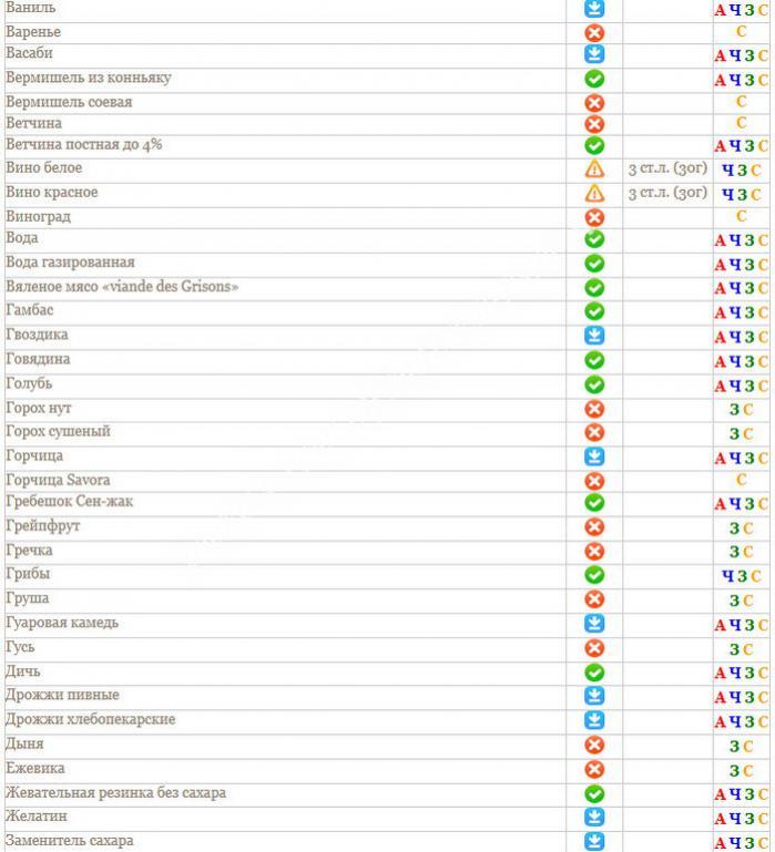 Список продуктов Вложение 28разрешенные продукты Вложение 29запрещенные продукты Вложение 30допустимые (2 продукта в день) Вложение 31добавки Этапы диеты: A — Атака Ч — Чередование (Круиз) З — Закрепление (Консолидация) C — Стабилизация |