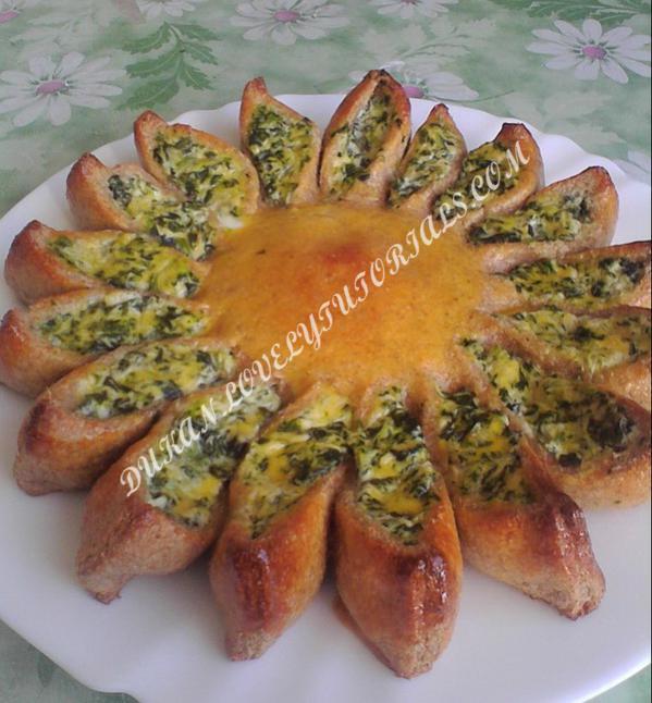 Вложение 584 Хлебный пирог «Солнышко» Из расчета на 2 дня Тесто: 60 мл теплого сухого белого вина+140 мл воды (в идеале взять 200 мл вина) 1 ч.л. без верха псиллиума 0,5 ч. л. соли 1 ст. л. оливкового масла 4 ст.л. молотых овсяных отрубей 2 ст.л. пшеничных отрубей 2 ст.л. клейковины Начинка: 8 шариков замороженного шпината 250 г рикотты 1 яйцо (белок в начинку, желток для обмазки) 60 г сыра соль перец Вино смешать с водой, добавить псиллиум и оставить на 15 минут для набухания. Добавить соль, масло и перемешать. Смешайте все сухие ингредиенты, добавить в жидкую смесь и замесите однородное тесто. Оберните его в пищевую пленку пока будете готовить начинку. Замороженный шпинат положите в миску, добавьте 2 ст. л. воды и поставите на 7 минут в микроволновку при полной мощности. Шпинат остудите, выжмите его, чтобы убрать лишнюю воду. Нарежьте острым ножом и смешайте с рикоттой. Вбейте туда же белок яйца, добавьте тертый на средней или мелкой терке сыр, соль и перец. Все хорошенько перемешайте. Нагрейте духовку до 180°C. Тесто разделите на 2 части. Стол и скалку смажьте маслом. Раскатай-те тонко каждую часть теста и при помощи большой тарелки вырежьте круг (я для этого воспользовалась суповой тарелкой 23 см в диаметре)(желательно чтобы второй круг теста был чуть больше первого). Первый круг выложите на противень, застеленный бумагой для выпечки. Выложите начинку небольшим конусом (в центре побольше, а к краю чуть меньше), отступая по краю 1 см. Край теста в 1 см смажьте водой. Накройте вторым чуть большим кругом теста и соедините 2 круга по краю. В центр поставьте небольшую мисочку или чашку, слегка на нее нажмите, чтобы очертить круг. Затем сделайте проколы вилкой по диаметру. Острым ножом сделайте надрезы от очерченного в центре круга до края пирога через каждые 2 или 3 см. Поверните каждую часть на 90°. Обмажьте весь пирог желтком. Обрезки теста порежьте на полоски в 8-10 см и положите рядом с пирогом (из них получатся сухарики). Выпекайте 20-25 минут (ориентируйтесь на свою духовку, сухарики можно вынуть и раньше). |