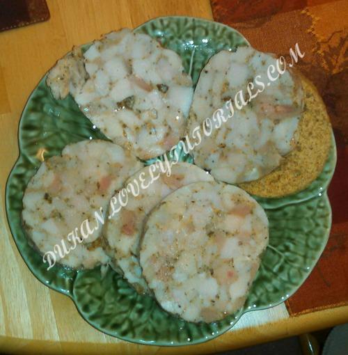 Рецепт-Натальи Аксеновой Вложение 605 1 кг куриного филе(чтоб сочнее было можно и бедра) порезать маленькими кубиками, добавить 6 зубчиков чеснока, соль, перец, специи по вкусу, 25 гр сухого желатина. Все ингредиенты перемешать, выложить на пищевую пленку и плотно замотать, слоев 7-10. Получившуюся "колбаску" варить 1 ч, остудить до комнатной температуры и убрать на ночь в холодильник. |