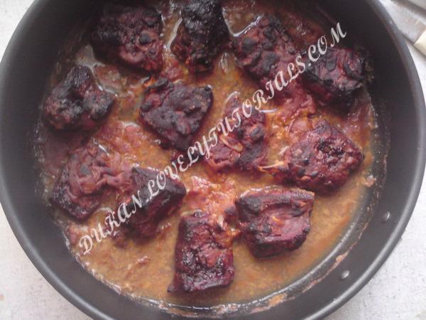 Печень в соусе 0,5 кг говяжей печени,1 ст.л. горчицы,1ст. л. соевого соуса,половина луковицы 1)печень порезать на небольшие куски, выложить в форму или сковороду 2)смешать горчицу,соевый соус и резанный лук,залить этим печень,добавить немного воды и поставить в аэрогриль или духовку минут на 15-20,на 200 градусов |
