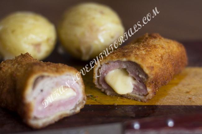 Ингредиенты: телячья вырезка ветчина твердый сыр яйца крахмал отруби оливковое масло соль свежемолотый черный перец Кордон можно готовить и из курицы. Приготовление: 1. Подготовьте все для панировки. Удобнее всего использовать 3 тарелки, с крахмалом, взбитыми яйцами и отрубями. 2. Отбейте телятину. Положите кусок между двух листов пергамента и хорошо пройдитесь чем-нибудь плоским и тяжелым. Не надо использовать молоток с зубчиками, они разрывают волокна мяса. Пускай телятина станет не более 5 мм в толщину. 3. Постелите на мясо ветчину, сверху положите сыр. Затем, сверните все в рулет, Мясо должно прекрасно склеиться, будьте отважны. 4. Обваляйте котлеты в крахмале. Следом, обмакните во взбитые яйца и отправьте в тарелку с отрубями. Затем, повторите процесс, только уже без крахмала. Теперь у нас мощная корочка. 5. Поставьте Кордон Блю в холодильник на 10 минут. 6. За это время разогрейте сковороду, а также духовку, до 180° С. 7. Быстро обжарьте Кордон в допустимой норме масла на этапе, до золотистого цвета. 8. Доведите котлеты в духовке до готовности, 5-7 минут. |