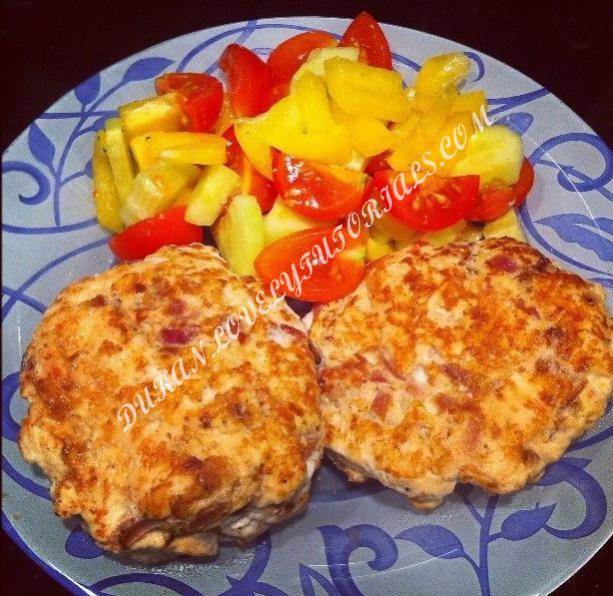 Вложение 716 Ингредиенты: * 1 кг филе куриной грудки * 1 ст.ложка мягкого творожка 0% * 1 сырое яйцо * 1 ст.ложка пшеничных отрубей * 1 луковица * 1 зубчик чесночка * Соль/специи/перец по вкусу Грудку мелко порезать ножом на квадратики (1х1 см). Добавить 1 ст.ложку мягкого творожка с горкой. Добавить яйцо и ложку отрубей для "связки". Добавить мелко нарезанный лук, выдавить чесночок. Поперчить, посолить по вкусу. Всё перемешать. Выкладывать на разогретую сковородку либо просто ложкой, формируя ложкой котлетку, либо намочить руки и руками сформировать котлетку и класть на хорошо разогретую сковородку. Как только котлетки схватились и подрумянились с двух сторон, убавляем огонь, делаем средне-слабый и под крышку. Минут 15-20 и котлетки готовы. У меня получилось 9 довольно крупных котлет. Отруби в них не ощущаются совершенно! Получаются очень вкусные и вполне сочные котлеты. Но чтобы были посочнее, можно сделать либо только из филе бедра, либо микс из грудки и бедра. Приятного аппетита! |