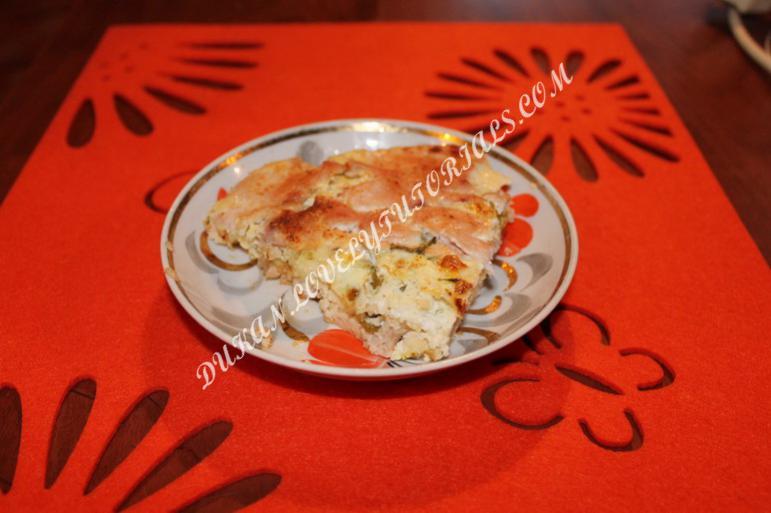 Вложение 718 Ингредиенты: - куриная грудка 500 гр. - творог обезжиренный 200 гр. - зелень - 2 яйца - молоко - соль, специи Способ приготовления: Хотела приготовить мясной рулет, рецепт которого нашла здесь, но лень было крутить фарш. Куриную грудку нарезаем тонкими пластинками, творог смешиваем с зеленью. В форму слегка смазанную маслом укладываем слой мяса (половину грудки), чуть солим и посыпаем специями, сверху слой творога с зеленью, закрываем слоем мяса, опять посыпаем специями. Яйца взбиваем с небольшим количеством молока и заливаем сверху наше блюдо. Запекаем в духовке примерно 1 час. Приятного аппетита! У меня духовка старая, температуру там не узнаешь, поэтому по прошествии минут 45 периодически заглядывала на предмет готовности |