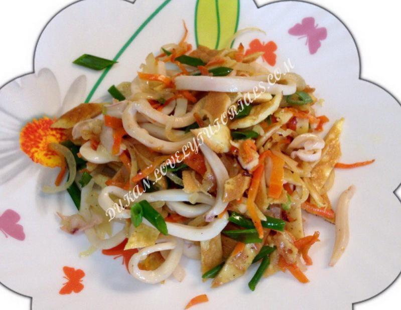 Вложение 738 Теплый салат с кальмаром https://vk.com/images/emoji/D83DDD39.png(3 порции) https://vk.com/images/emoji/D83DDD38.png2 тушки кальмара https://vk.com/images/emoji/D83DDD38.png1 маленькая морковь https://vk.com/images/emoji/D83DDD38.png1 головка лука https://vk.com/images/emoji/D83DDD38.png4 пера зеленого лука https://vk.com/images/emoji/D83DDD38.png2 яйца https://vk.com/images/emoji/D83DDD38.png1 маленький зубок чеснока https://vk.com/images/emoji/D83DDD38.png1 ч.л подсолнечного масла (для обжарки) https://vk.com/images/emoji/D83DDD38.png1 ч.л кунжутного или оливкового масла https://vk.com/images/emoji/D83DDD38.pngчерный перец и соль по вкусу https://vk.com/images/emoji/2714.pngЧистим кальмаров и отвариваем 1 минуту в кипящей подсоленной воде, остужаем, режем кольцами. https://vk.com/images/emoji/2714.pngНа очень сильно разогретой с растительным маслом сковороде обжариваем нарезанную тонкой соломкой морковь 3 минуты, постоянно помешивая, добавляем нарезанный полукольцами лук и чеснок соломкой, продолжаем обжаривать до прозрачности лука https://vk.com/images/emoji/2714.pngПерекладываем морковь и лук в чашку, в сковороду засыпаем кальмары и обжариваем 1-2 минуты до появления аромата. https://vk.com/images/emoji/2714.pngЯйца взбиваем с щепоткой соли, выливаем на блинную сковороду и жарим омлетный блин с двух сторон, остужаем, режем тонкими полосками. https://vk.com/images/emoji/2714.pngСоединяем все ингредиенты, добавляем порезанный наискосок зеленый лук, перец, соль и кунжутное масло. https://vk.com/images/emoji/2714.pngПеремешиваем, подаем теплым. https://vk.com/images/blank.gifВкуснятина! Приятного аппетита! |