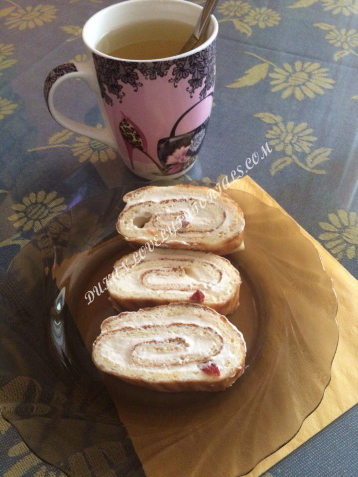 Ванильный рулет с творожной начинкой и ягодами годжи