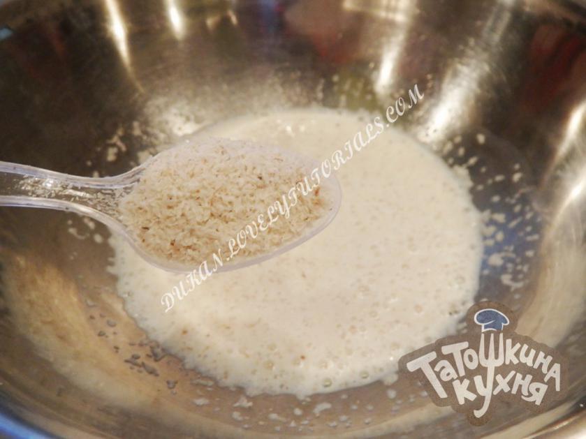 Нормы Без ОТРУБЕЙ Без ДОПов Норма КЛЕЙКОВИНЫ на 2 ДНЯ Ингредиенты 200 мл. обезжиренного молока (жидкого) 2 мерных ложки псиллиума (~10 гр) 4 ст.л. клейковины 100гр 1,5 ч.л. разрыхлителя 4 яйца 1-2 таб. сахарзама Соль, приправы по вкусу В этом рецепте ингредиенты не заменяем! Пищевая ценность на 100 гр: 332.2Ккал 50.4Белки 11.5Жиры 27.3Углеводы Пышки по Дюкану Приготовление Псиллиум заливаем молоком и оставляем для набухания минут на 15-20. В результате получится масса, похожая на манную кашу =) Вложение 76 По истечению времени добавляем к псиллуму все остальные ингредиенты. Смешиваем, взбиваем миксером до однородности. Вложение 77 Получается тесто очень клейкой консистенции Вложение 78 Выкладываем тесто в формочки на 2/3 высоты. Можно по желанию выложить тесто в форму для хлеба. Вложение 79 Выпекаем наши пышки по Дюкану в духовке при 180С 35-40 мин. Вложение 80 В результате получаются невероятно вкусные и легкие пышки по Дюкану! Вложение 81 Очень нежная структура, которая получается именно благодаря псиллуму (в скором времени напишу отдельную статью о нем! ) Вложение 82 Эти пышки по Дюкану можно сделать сладкие ( с годжи, корицей и т.д.) или несладкие (с пряностями, травами и т.д.) На фото — с плавленным сыром по этому рецепту Вложение 83 Автор-Татошка Кустова |