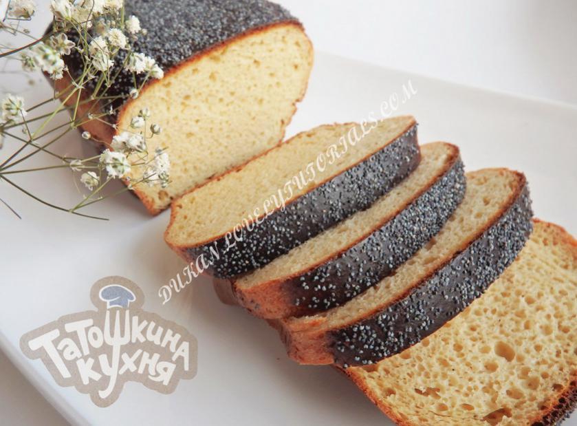 Вложение 89 «Батон Белого» по Дюкану Этот хлеб по Дюкану, пожалуй, мой самый любимый! Пышная, воздушная структура. Нежный вкус и тонкая корочка - то, что мы все любим в хлебе! А самое главное - всю эту большую буханку можно съесть за 2 дня! Пробуйте, не пожалеете! Этапы диеты закрепление стабилизация чередование Нормы БЕЗ ОТРУБЕЙ Норма ДОПов на 2 ДНЯ Норма КЛЕЙКОВИНЫ на 2 ДНЯ Ингредиенты для теста: 2 мерные ложки псиллиума 10 гр 200 мл обезжиренного кефира 0%-1% 5 гр сухих дрожжей 1/2 пачки 4 яйца 5-6 ст.л. сома (сухого обезжиренного молока) 60 гр 2 ДОПа 2 ст.л. кукурузного крахмала 40 гр 2 ДОПа 0/5 ч.л. разрыхлителя 4 ст.л. клейковины пшеничной 100 гр 1 табл. или пару капель сахарзама 1 ч.л. посыпки (кунжут, мак, семена льна, семена чиа) соль Пищевая ценность на 100 гр: 189.7Ккал 16.1Белки 7.7Жиры 13.9Углеводы (если у вас нет псиллиума — можно обойтись без него, просто добавляйте меньше кефира, вполовину сократите яйца и больше положите разрыхлителя) Хлеб по ДюкануПриготовление В начале приготовления хлеба по Дюкану подогреем немного кефир. Это можно сделать и в микроволновке, включив ее на 30-40 секунд на максимальной мощности. В кефир всыпаем дрожжи и сахарзам. Хорошенько перемешиваем.Вложение 90 Добавляем у кефиру псиллиум. Оставляем его дня набухания на 5-7 минут. Если псиллиума у вас нет, пропустите этот шаг Когда псиллиум набух — добавляем все остальные ингредиенты. Немного посолим Смешиваем микрером до однородности теста. Тесто получается очень вязким, поэтому лучше использовать для миксера насадки — крюки. Вложение 94 Тесто перкладываем в силиконовую форму для хлеба. Присыпаем сверху. Я использую для посыпки мак- в этом рецепте он прекрасно оттеняет вкус самого хлеба Оставляем в теплом месте для расстойки на 30-40 минут. Я всегда оставляю хлеб подниматься в едва теплой духовке ( температура не выше 30 С) Расстоявшийся хлеб выпекаем при 200 С 40 минут. ( Температура указана для плит без конвекции. В духовках с конвекцией выпекайте 30-35 минут) Готовый хлеб по Дюкану достаньте из формы и заверните в чистое кухонное полотенце. Полностью остудите . В результате у нас получается очень нежный, пышный хлеб по Дюкану . Очень похожий по вкусу на белый хлеб или батон! Он прекрасно подойдет для тостов и сэндвичей! Пробуйте! СОВЕТ! Чтобы ваш хлеб по Дюкану оставался дольше свежим — храните его не в целофановом пакете, а в бумажном пакете или пергаменте. При этом не обязательно хранить его в холодильнике — он прекрасно сохраняется и в закрытой хлебнице!Вложение 101 |