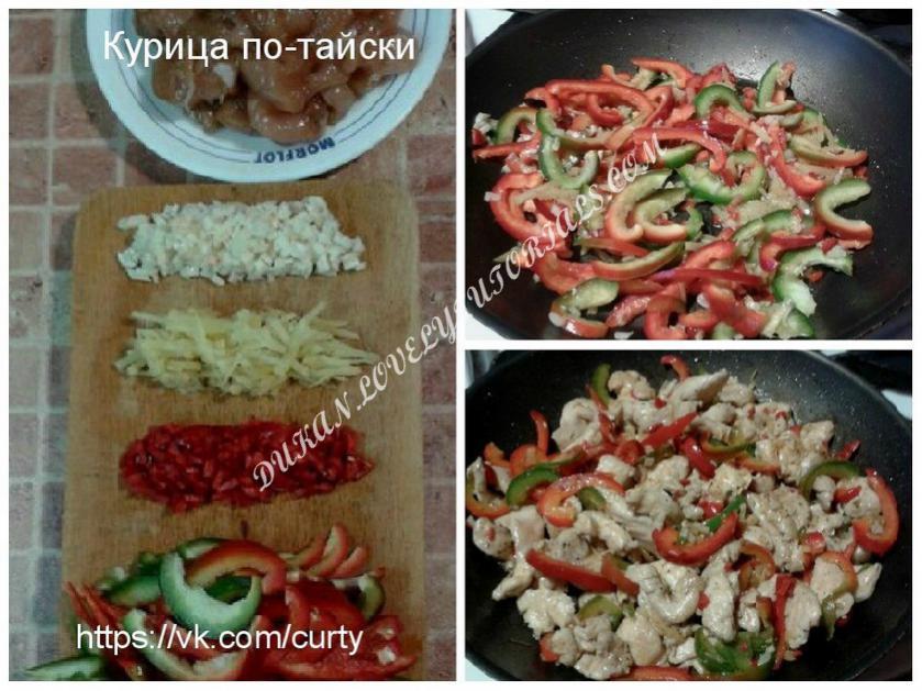 Вложение 882 Рецепт для тех, кому надоела курица. Готовится быстро, ароматно, сочно, безумно вкусно! Имбирь и чили в помощь худеющим. Итак: Филе куриное - 400 грамм; Соевый соус без сахара - 2-3 ст.л; Сладкий перец красный - 2 шт средних; Имбирь - кусочек (я беру сантиметров 5); Чеснок - 4 зубчика; Оливковое масло - 1 ст.л.; Перец Чили - половинка стручка или целый, если любите очень острое; Чёрный молотый перец; Соль Нарезать полосками куриное филе, полить соевым соусом, перемешать и оставить на пол часа пропитаться (примерно то время, пока вы будете подготавливать овощи). Подготовить овощи: мелко порубить чеснок и перец чили, имбирь нарезать тонкими полосками, нарезать сладкий перец. В ложке масла на хорошем огне пару секунд обжарить чеснок, добавить имбирь и чили и еще пару секунд обжарить, добавить сладкий перец, жарить примерно минуту, добавить курицу и обжарить до готовности. Приправить по вкусу солью и черным перцем. Очень вкусно есть с зеленой фасолью. Приятного аппетита! |