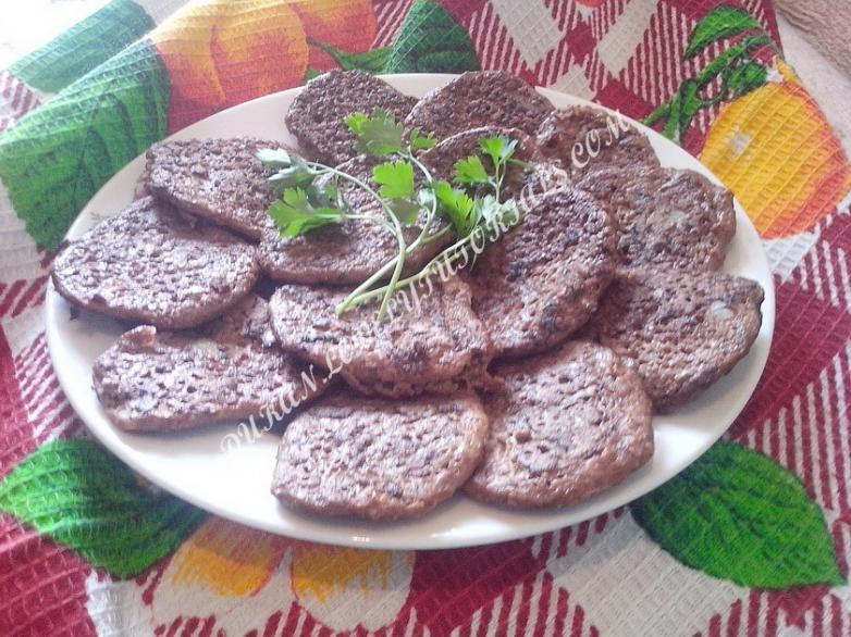 Вложение 884 1уп печени куриной 900гр, 2 яйца, 3ст ложки овсяных отрубей, 1 луковица, соль, перец. В блендере измельчить печень, добавить мелко нарезанный лук, яйца, соль, перец,отруби (можно ещё 1 ст ложку пшеничных отрубей с чередования), все смешать и жарить на сухой антипригарной сковороде, выливая по 1 ст ложке фарша. (лучше огонь делать посильнее,чтоб оладьи не разваливались). Готовится ОЧЕНЬ быстро, получается ОЧЕНЬ вкусно!!! |