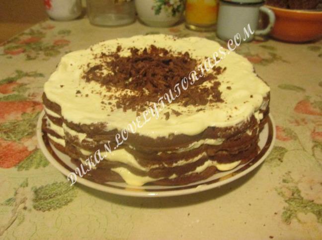 Торт вафельный шоколадный с ванильным творожным заварным кремом