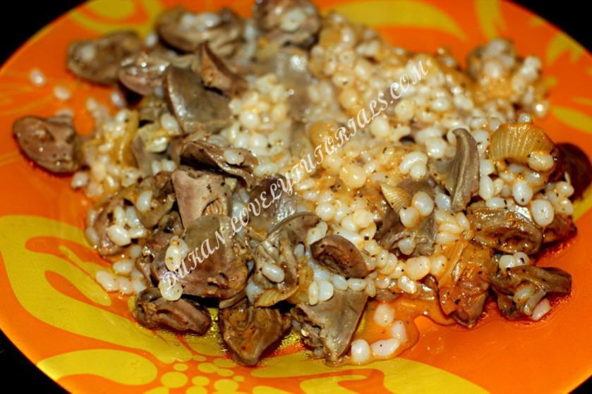 Вложение 938 Потушить сердечки с луком, специями и томатной пастой, добавить заранее приготовленный рис ширатаки. |
