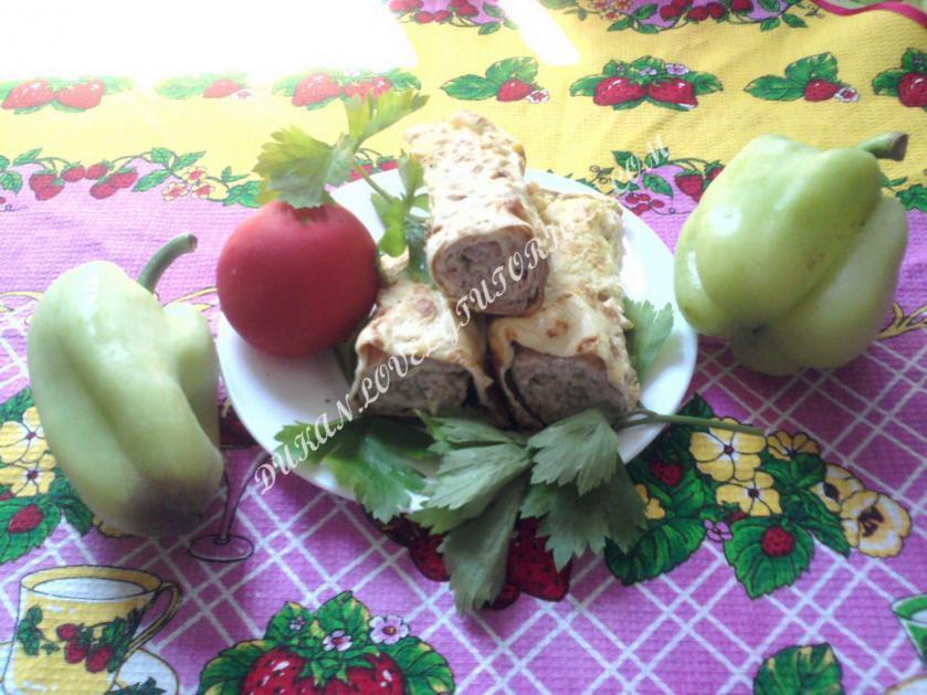 Вложение 967 Яйцо куриное - 3 штуки; Молоко - 3 столовые ложки; Филе куриной грудки - 300 грамм; Лук репчатый - 1 штука; Масло подсолнечное - 1 ст.л. Соль - по вкусу; Перец черный молотый - по вкусу. Из любого мяса, яиц и молока можно приготовить отличную горячую закуску, которая может стать и вторым блюдом в обед или основным на ужин. Это - бризоль. Для приготовления этого блюда понадобятся: яйца куриные, любое мясное филе(у меня куриная грудка), молоко, масло подсолнечное, соль и перец. Лук репчатый чистим и моем. Пропускаем через мясорубку филе любого мяса и лук. Солим и перчим по вкусу и перемешиваем. Из трех яиц готовим три омлета. Взбиваем одно яйцо, одну столовую ложку молока и слегка солим. На горячую сковороду наливаем подсолнечное масло и выливаем взбитое яйцо с молоком. Обжариваем омлет с обеих сторон. Получаем три омлета из трех яиц. Каждый омлет смазываем тонким слоем мясного фарша. Затем сворачиваем рулетом и кладём в форму для запекания. Ставим в духовку, разогретую до 180 градусов С и печем 20 минут. Подаем на закуску в теплом виде. Просто и очень вкусно. Приятного аппетита! |