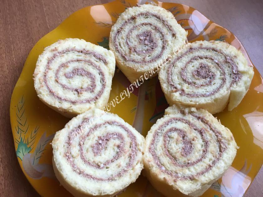 Вложение 1018 Для бисквита: 4 яйца 1 ч. л. порошка для выпечки (разрыхлителя) 2,5 ст. л. кукурузного крахмала сахарозаменитель 4 гр фит-парад №7 ванилин 1 пакетик 1,5гр Для шоколадного крема: 170гр. жидкого творога (Вкуснотеево 0,3 жира - целая пачка) сахарозаменитель 8гр фит-парад №7 1 ст. л. какао-порошка с горкой Смешать все ингредиенты для шоколадного крема. Приготовление бисквита. Взбить 4 яичных белка до густой пены. Смешать 4 яичных желтка, порошок для выпечки, крахмал, сахарозаменитель и ванилин. Аккуратно вмешивать белки. Застелить пергаментной бумагой противень 30Х40 см. Вылить на него тесто. Выпекать на средней высоте на 170 градусах в течение 8 минут. Осторожно отклеить бисквит, не повредив его. Намазать шоколадный крем на корж. Свернуть корж, слегка нажимая, в рулет. Поставить в холодильник 1 час. |