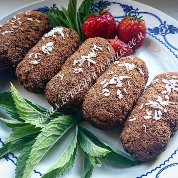 Вложение 1059 Рецепт:2ст.л.ОО;1ст.л.ПО;1 яйцо;2ст.л.молока;2 ст.л.какао;2 ст.л.сиропа;1 ст.л.СОМ;1ч.л.разрыхлителя;с хзам.Всё смешать и дать постоять минут 10,затем выпекать в микроволновке 3-4 минуты,затем я бисквит этот измельчаю блендером.Крем:1 желток;150мл.молока;1 ст.л.КК;1 ст.л сиропа;2ст.л.какао;сахзам,вс е смешать и варить в микроволновке 2мин,периодически помешивая,крем не должен быть густым.Затем смешиваем измельченный бисквит и крем,лепим наши пироженки) |