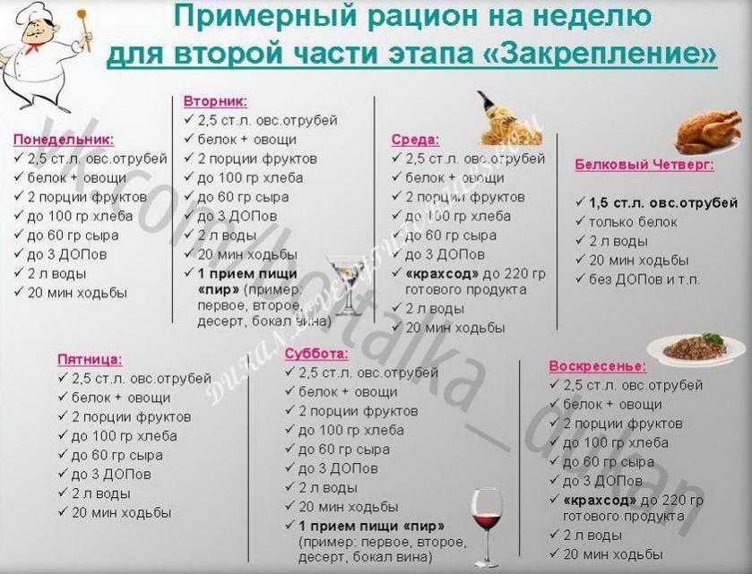 ПВ — правильный вес НВ — начальный вес ЖВ — желаемый вес ТВ — текущий вес ЧБ — чисто-белковые дни БО — белково-овощные дни БЧ — белковый четверг ДОП — допускаемый продукт Сахзам — сахарозаменитель Крахсод — крахмалосодержащий прием пищи КД — критические дни СОМ — сухое обезжиренное молоко Закреп — этап Закрепления Стаб -этап Стабилизации ОО — овсяные отруби ПО — пшеничные отруби КК — кукурузный крахмал 1/1, 2/2, 3/3, 4/4, 5/5 — схемы Чередования дней: 1ЧБ/1БО или 2ЧБ/2БО и.т.д. |