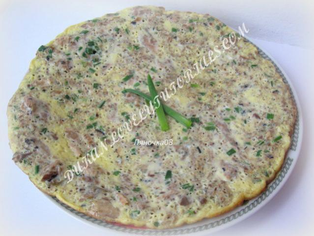 Омлет с консервой и зеленым луком