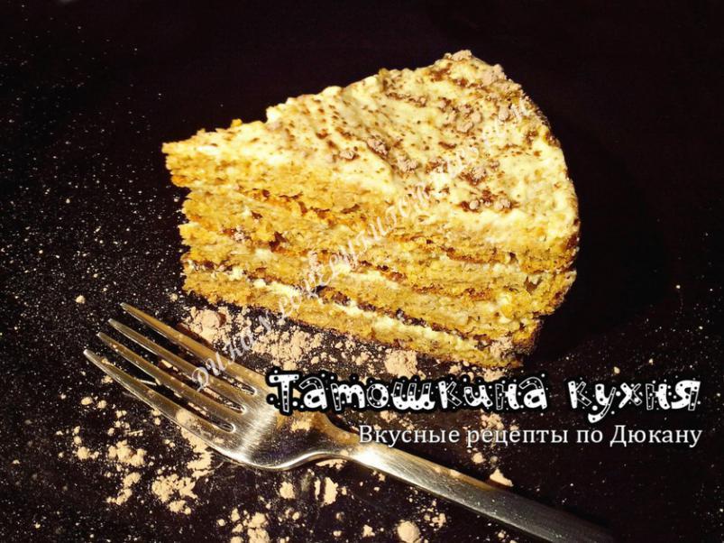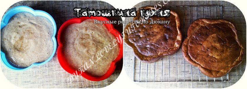 Вложение 1097 Бисквитный Медовик с заварным кремом по Дюкану Самый самый настоящий медовик по Дюкану! Ароматный, мягкий, сладкий! Вы не поверите что это диетический тортик! Этапы диеты закрепление стабилизация чередование Нормы ОТРУБИ на 2 ДНЯ Норма ДОПов на 2 ДНЯ Ингредиенты Для бисквита: 4 ст.л. овсяных отрубей (смолотых в муку) 2 ст.л. пшеничных отрубей (смолотых в муку) 5-6 ст.л. СОМ 60гр 2 ДОПа 1 ст.л. кукурузного крахмала 20 гр 1 ДОП 4 яйца 150 мл. кефира 0-1% 2 ч.л. разрыхлителя сахарзам щепотка соли аромик "мёд" (если есть) Для крема: 400 мл. обезжиренного молока (жидкого) 3 желтка 1 ст.л. кукурузного крахмала 20гр (1 ДОП) сахарзам Пищевая ценность на 100 гр: 108Ккал 8.2Белки 4.9Жиры 7.6Углеводы Торт по Дюкану Приготовление Начнем приготовление медовика по Дюкану. Для того, чтобы бисквит по вкусу напоминал медовик необходимо обжарить СОМ. Сом выкладываем на сухую сковороду и на очень маленьком огне обжариваем до золотистого цвета. Стараемся разбивать образовавшиеся комочки. Когда Сом обжарился его необходимо опять измельчить. Я это делаю с помощью кофемолки. Вложение 1098В СОМ добавляем все остальные сыпучие ингредиенты кроме соли. Белки отделяем от желтков. Желтки добавляем в тесто и вливаем кефир. Размешиваем до однородности. Если есть аромик — добавляем его именно сейчас. Вложение 1099Белки взбиваем ссолью до очень крепких пиков. В белках должна стоять ложка — до такого состояния нам необходимо их взбить. Аккуратно смешиваем с тестом, чтобы не опали. Вложение 1100Выливаем половину теста в форму. Выпекаем при 180 С минут 20-25 до «сухой палочки». Вторую половину теста в это время лучше убрать в холод — чтобы не опали белки. Так же выпекаем второй корж. Остужаем на решетке. Вложение 1101Разрезаем каждый корж вдоль еще на два коржа. Вложение 1102Займемся кремом. Нагреваем половину молока на небольшом огне. НЕ ДОВОДИМ ДО КИПЕНИЯ! Во вторую половину молока добавляем желтки, крахмал и сахарзам. Взбиваем до однородности, чтобы не было комочков. Разогретое молоко вливаем в желтковую смесь, смешиваем и ставим обратно на плиту. Вложение 1103На маленьком огне увариваем крем постепенно помешивая до густоты. Остужаем. Остывший крем я взбиваю еще миксером чтобы он был пышнее. И начинаем собирать торт. Каждый корж хорошенько промазываем кремом. Вложение 1104Смазываем кремом верх и бока торта. Украшаем по желанию.Отправляем в холодильник пропитываться (лучше на целую ночь) Получается большой высокий торт. Наслаждаемся! Вложение 1105Торт по вкусу очень напоминает настоящий медовик! А если Вы добавите в бисквит аромик «Мёд» вы вообще не отличите вкус от настоящего. |